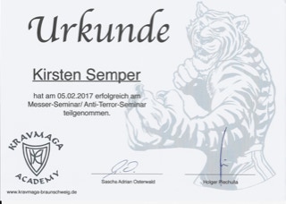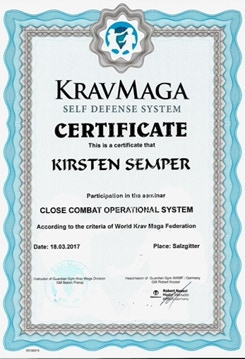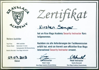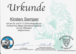 Zuletzt trainierte ich an der Krav Maga Academy Braunschweig und wurde dort 2017 von Lior Offenbach (aus Israel stammender Gründer des Verbandes Combat Krav Maga International) zum Instructor ausgebildet.